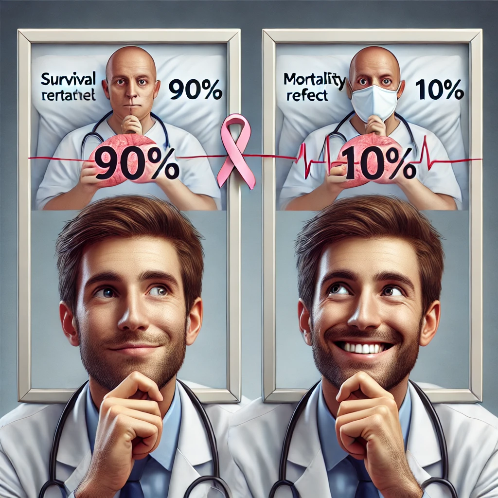 Exemple : Les gens peuvent réagir différemment à un traitement médical présenté avec un taux de survie de 90% versus un taux de mortalité de 10%, même si les deux statistiques décrivent la même réalité.